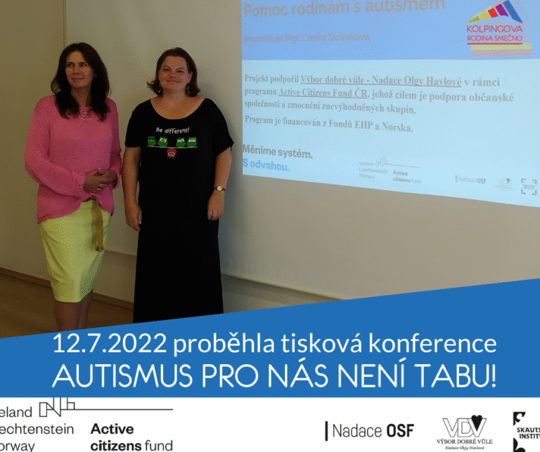 12.7.2022 proběhla v rámci projektu „Pomoc rodinám s autismem“ tisková konference s názvem AUTISMUS PRO NÁS NENÍ TABU! Konference se zúčastnili…