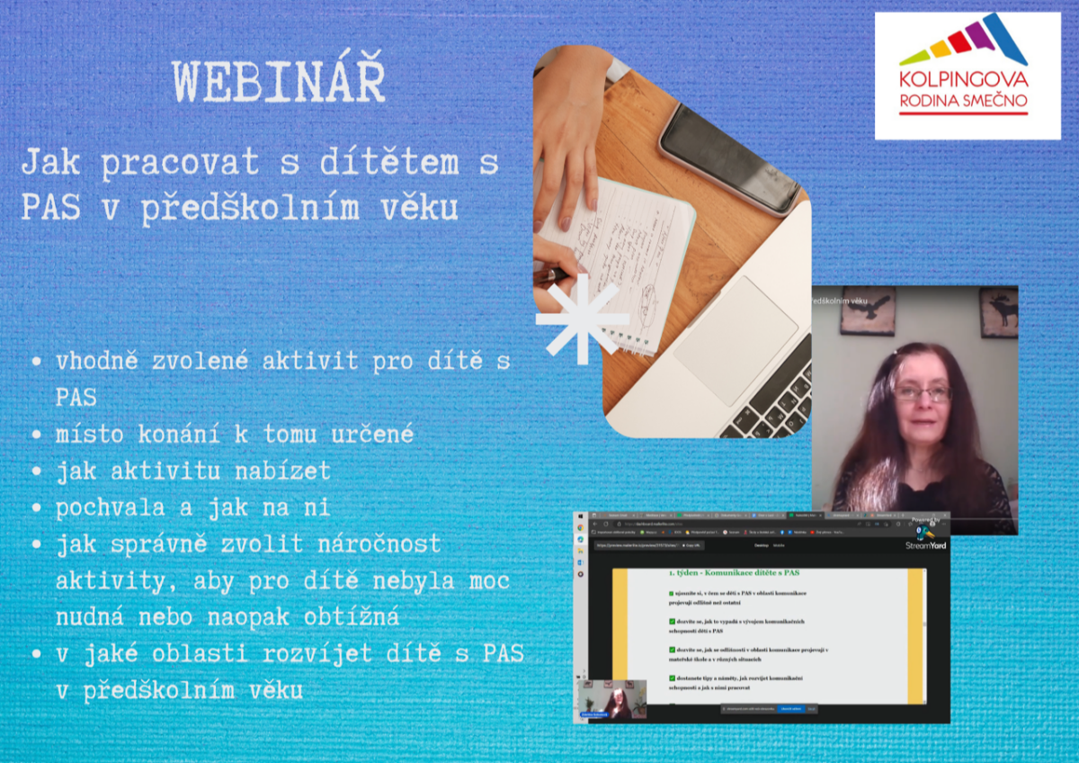 Naše poradkyně se snaží neustále vzdělávat, aby se jejich péče stala efektivní, proto u nás proběhl další webinář s názvem “Jak pracovat s dítětem s PAS v předškolním věku” pod vedením psycholožky a psychoterapeutky paní Mgr. Zdeňky Sokolové.