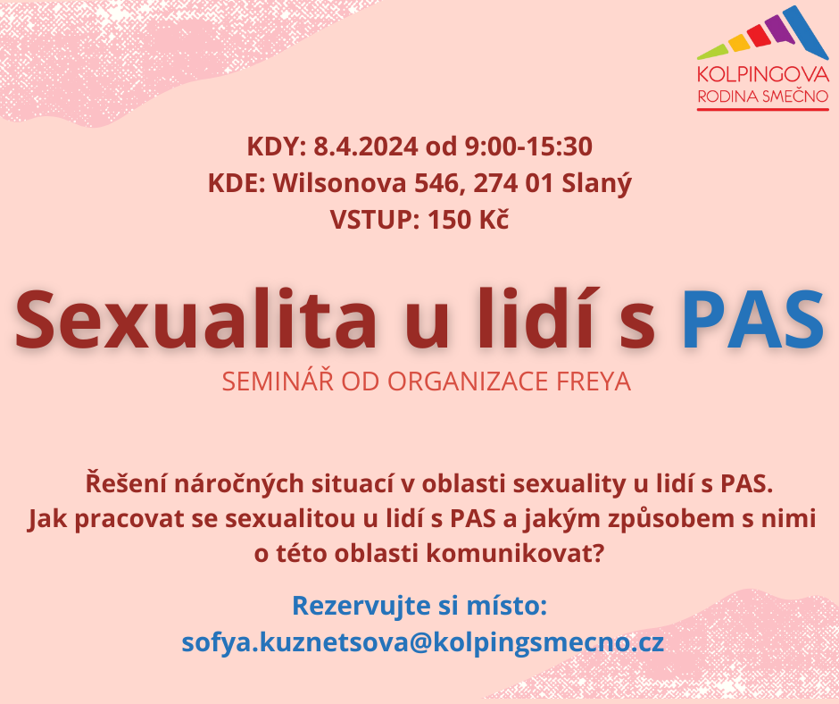 8. dubna 2024 proběhne v prostorách našeho Rodinného centra ve Slaném seminář “Sexualita dětí s poruchou autistického spektra (PAS)” , prezentovaný společnosti Freya.
